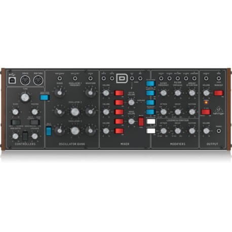 Behringer Model D to odtworzony, legendarny syntezator analogowy z 3 generatorami VCO, filtrami drabinkowymi, LFO, zamknięty w obudowie w standardzie eurorack.