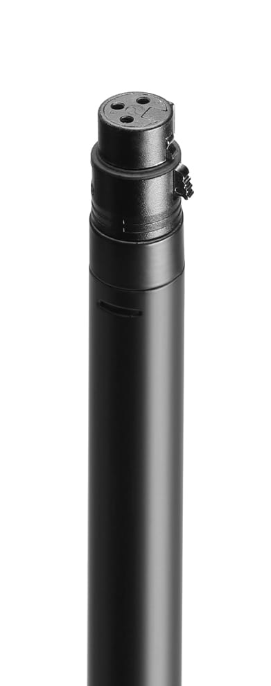 - Złącza: 1 x XLR 3-pin żeński na gęsiej szyi, 1 x XLR męski na dole sztycy do wyprowadzenia kabla