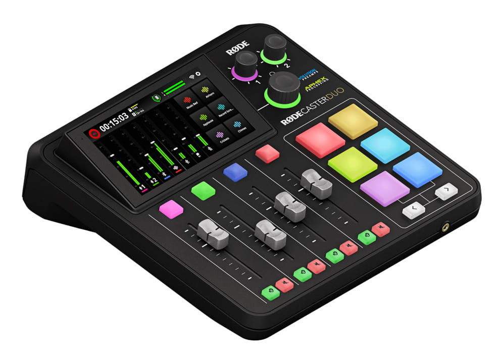 - RØDECaster Duo: kompaktowa, w pełni zintegrowana stacja produkcji dźwięku, która łączy w sobie rewolucyjne funkcje z wysoką jakością dźwięku i niebywałą łatwością w obsłudze